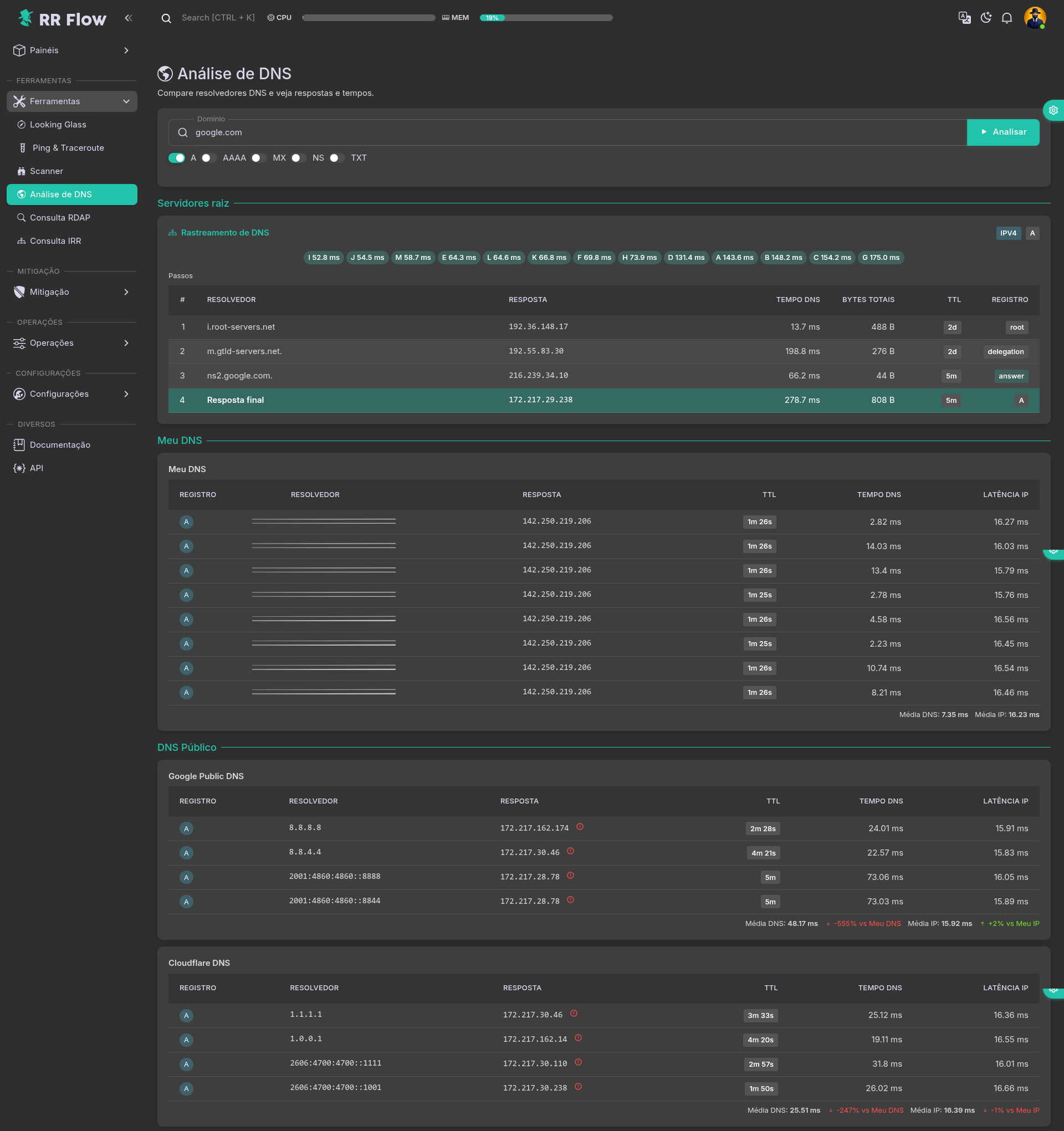 - O host do RR Flow precisa ter acesso ao serviço RDAP consultado.