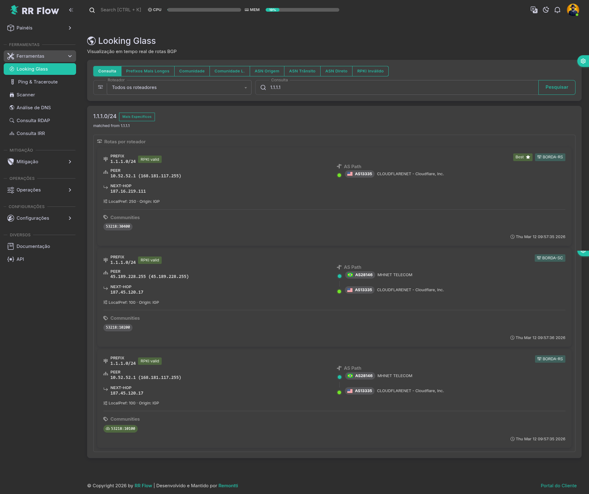 Consultar rotas BGP em tempo real a partir dos roteadores integrados ao RR Flow.