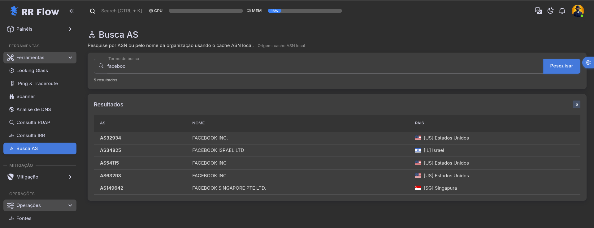 - Termo de busca: aceita ASN ou trecho do nome da organização.